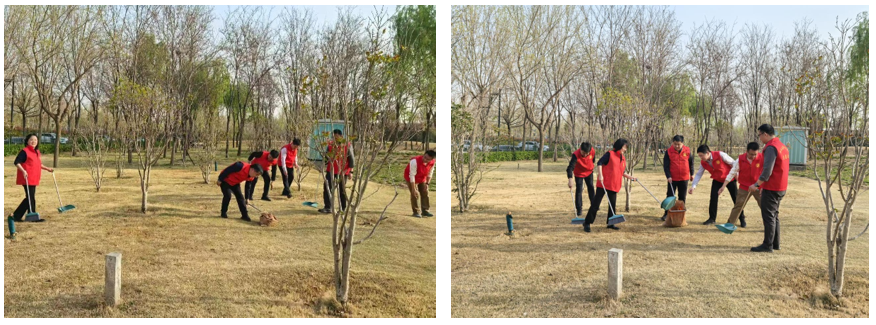 郑研院机关党支部组织党员和教职工在郑东新区象湖生态湿地公园开展环境清理活动。大家身穿红色统一志愿服,携带工具,分工协作,认真捡拾草丛、湖畔及步道周边的烟头、塑料瓶、废纸等垃圾,以实际行动践行绿色环保理念。除了环境清理工作,志愿者们还积极向游客宣传环保知识,倡导垃圾分类,引导市民树立“人与自然和谐共生”的理念,增强公众的生态保护意识。
