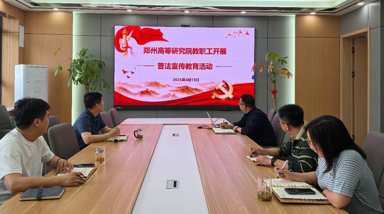 为全面学习贯彻习近平法治思想,认真落实教育系统“八五”普法规划,积极响应学校关于开展法治教育宣传周活动的工作部署。4月15日,郑州高等研究院通过线上线下相结合的方式,组织全体教职工开展普法宣传教育活动。