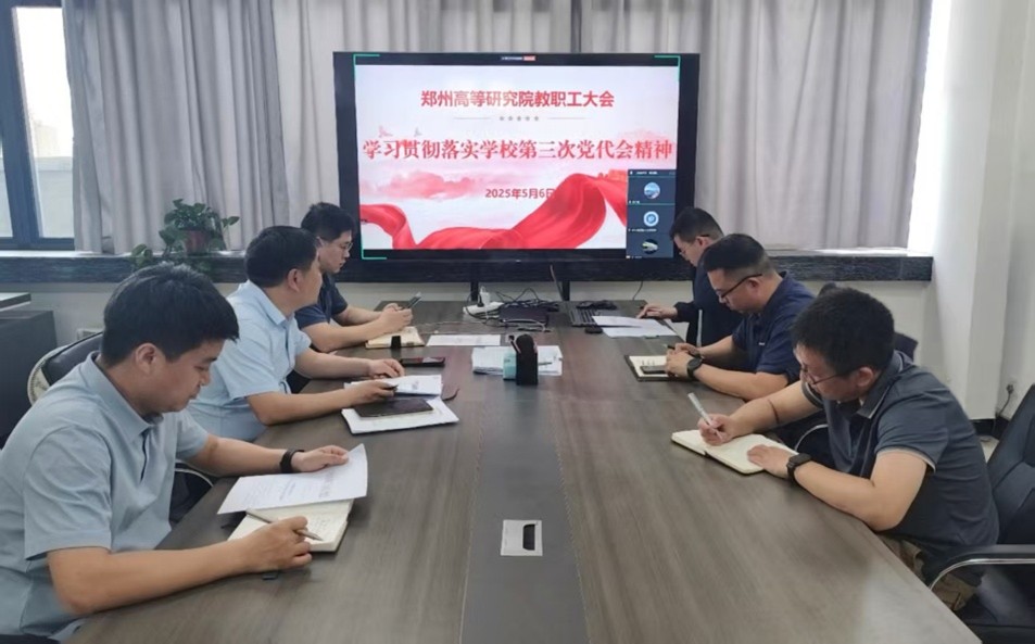 学习领悟党代会精神,笃行实干启新程。根据《中共河南理工大学委员会关于学习宣传贯彻学校第三次党代会精神的通知》部署安排,5月6日,郑州高等研究院召开全体教职工大会开展学习贯彻落实学校第三次党代会精神集中宣讲活动。会议由党委副书记、执行院长张合兵主持。全体班子成员、各科室负责人及全体教职工以线上线下相结合方式参加。