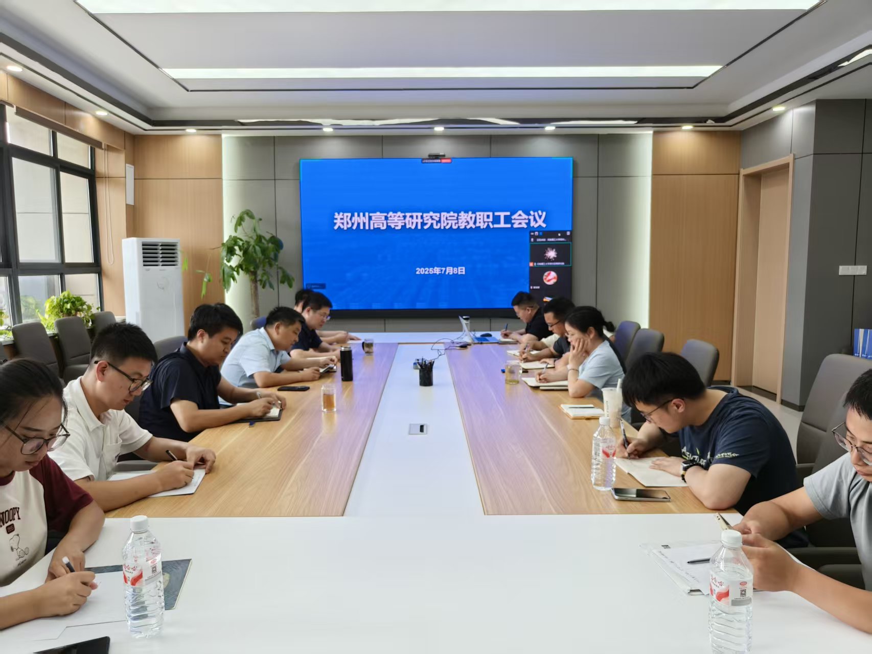 7月8日下午,郑研院在五楼会议室召开教职工大会,部署2025年暑期工作暨安全稳定工作。院领导班子成员、各部门负责人及全体教职工以线上线下相结合方式参会,会议由副院长杨明主持。