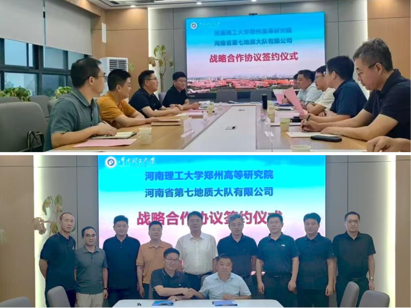 8月28日,河南省第七地质大队有限公司(以下简称“省地质七队”)董事长王明明一行5人莅临我院,围绕能源资源勘探开发、地球探测与透明地质研究等开展交流会谈并签署战略合作协议。省地质七队副总经理王振生、豫东项目中心主任王昊、副主任罗清威,学校副校长李振华、郑研院执行院长张合兵、副院长曹建亮、国家战略矿产安全高效开采创新中心主任张英及团队核心骨干参加交流会。会议由副院长杨明主持。