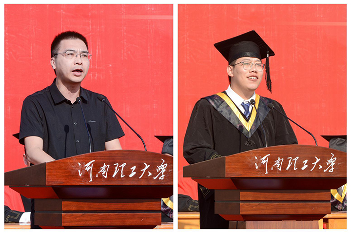 全国高校思政课教学展示特等奖获得者、马克思主义学院王家涛作为教师代表寄语毕业生,带着母校的烙印,积极投身国家和社会的发展事业为建设社会主义现代化强国,实现中华民族伟大复兴贡献力量。毕业生代表、能源学院采矿工程专业本科毕业生姚世斌回顾了大学四年的收获和成长,表达了对母校的感恩和投身祖国建设的决心。