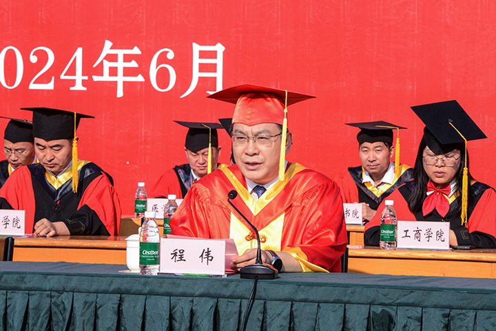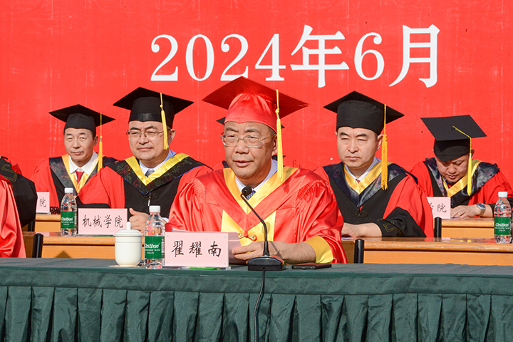 校领导邹友峰、赵同谦、解伟、翟耀南、赵晓军、程伟、李振华、边亚东、丁亚红、张建国、谢生荣出席典礼仪式。各学院、相关职能部门负责同志,教师代表、毕业生代表和2024届全体毕业生参加典礼仪式。仪式由校党委副书记解伟主持。