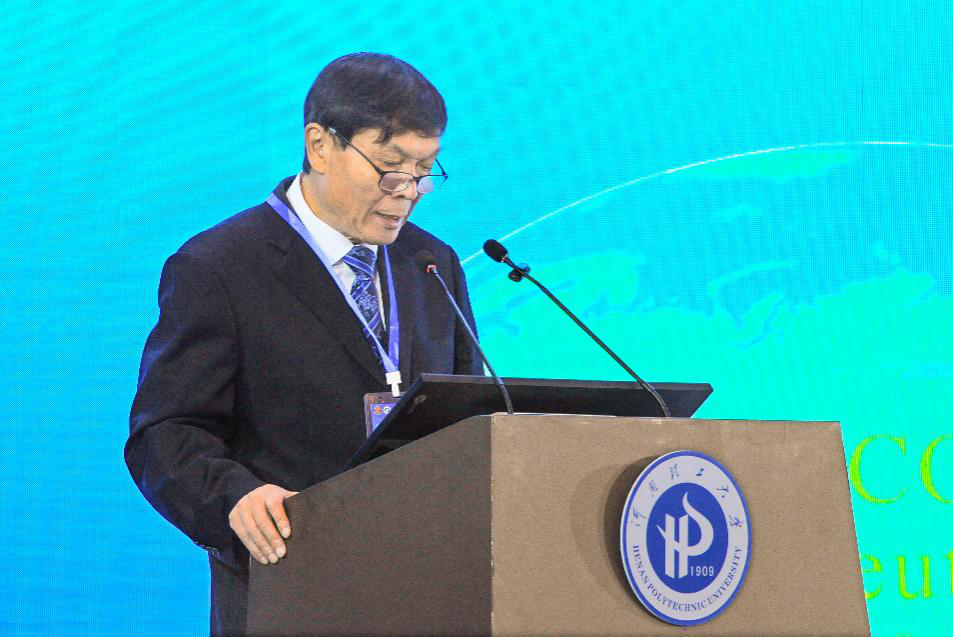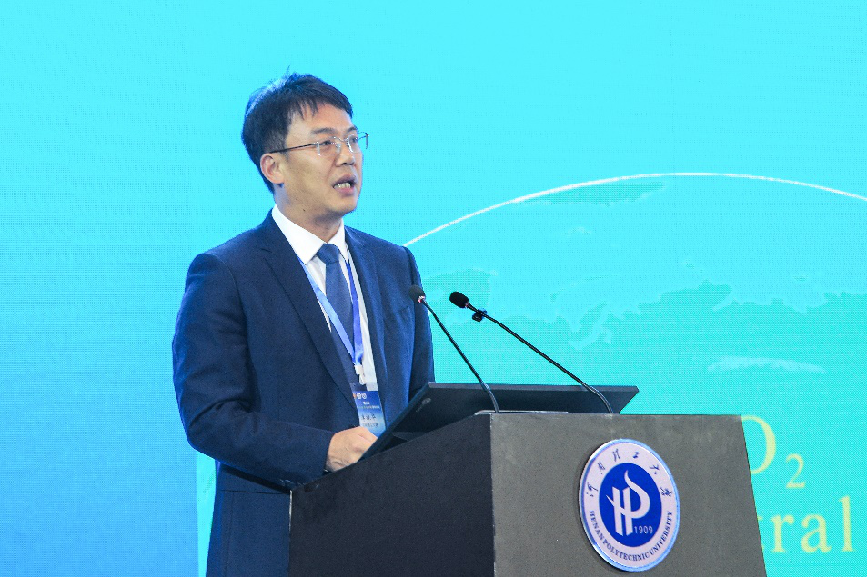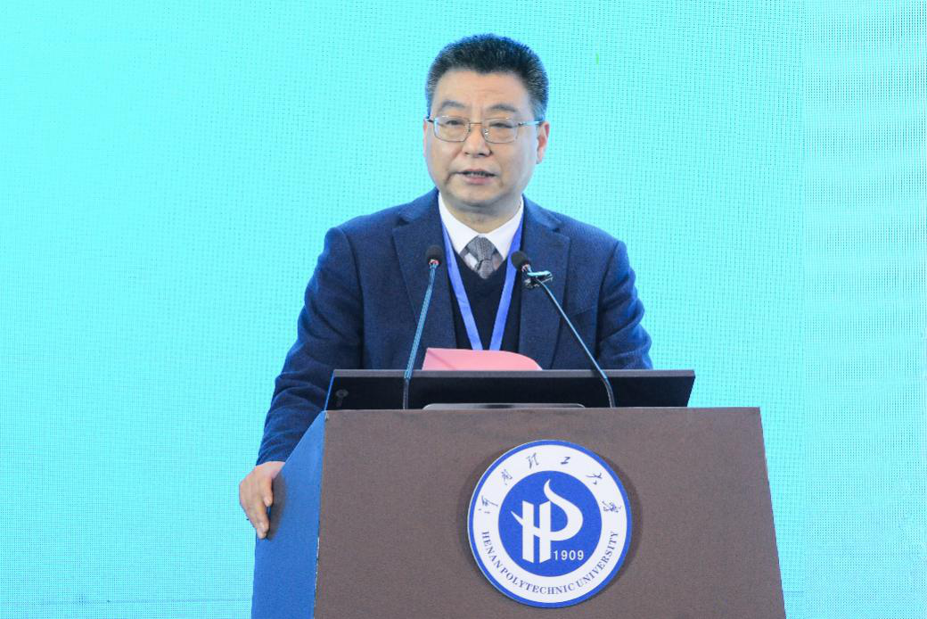 卞正富致辞。他对河南理工大学为会议筹备做出的努力表示衷心感谢,希望本次论坛为大家提供一个技术交流、合作探讨的优质平台,共享我国煤炭及相关行业在煤基碳减排和资源化利用领域取得的最新科技成果,推动碳中和科学与工程理论技术体系发展,实现能源资源行业技术升级与产业转型,服务经济社会发展全面绿色转型。