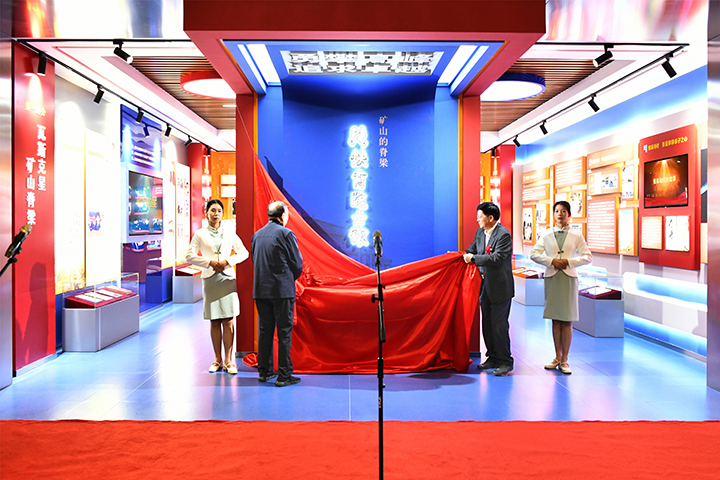 在与会人员的见证下,张铁岗、邹友峰共同为“矿山的脊梁——张铁岗院士馆”揭幕。