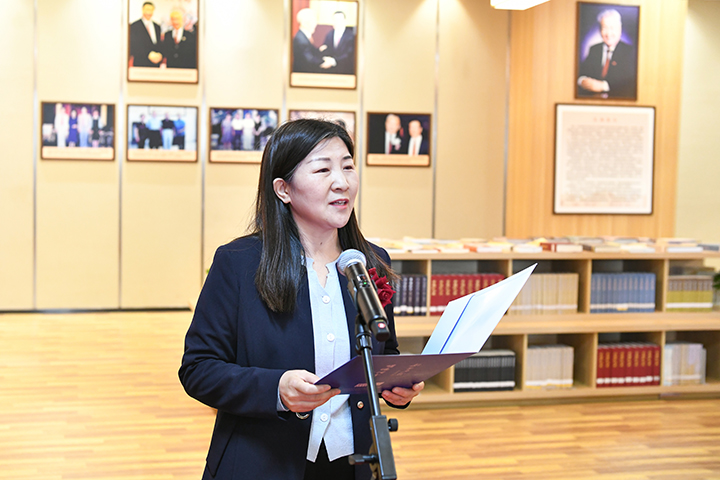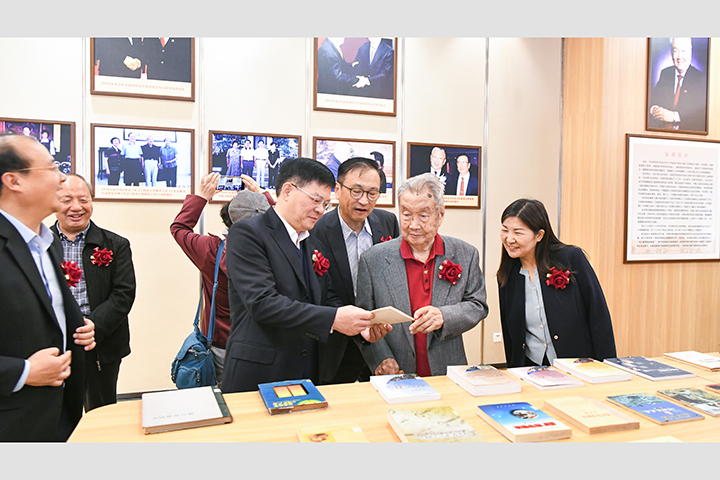 邹友峰表示,朱训先生作为地质勘探战线的著名专家,始终心怀国之大者,情系地矿教育事业。在百年校庆时,他设立了“朱训教育奖励基金”,激励着广大师生追求卓越、勇攀高峰。他还亲笔题词“创建一流大学,发挥学科优势”,谋划学校长远发展,多次亲临指导工作、捐赠珍贵书籍、作学术报告,给予学校高屋建瓴的引领和指导,为学校的跨越发展作出了重要贡献。“朱训书屋”中珍贵的藏书记录了朱训先生对地矿事业的卓越贡献,彰显着严谨治学的大师风范,传承着“以献身地质事业为荣、以艰苦奋斗为荣、以找矿立功为荣”的精神,饱含着对理工师生的殷切期望。希望全体师生以朱训先生为榜样,胸怀祖国、脚踏实地,追求卓越、砥砺前行,为服务国家安全生产、能源行业进步发展作出新的更大贡献。
