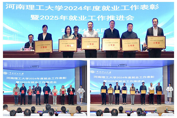 副校长丁亚红宣读了学校《关于表彰2024年度毕业生就业工作先进集体和先进个人的决定》和《关于表彰河南理工大学第二届全国大学生职业规划大赛获奖集体和个人的决定》。