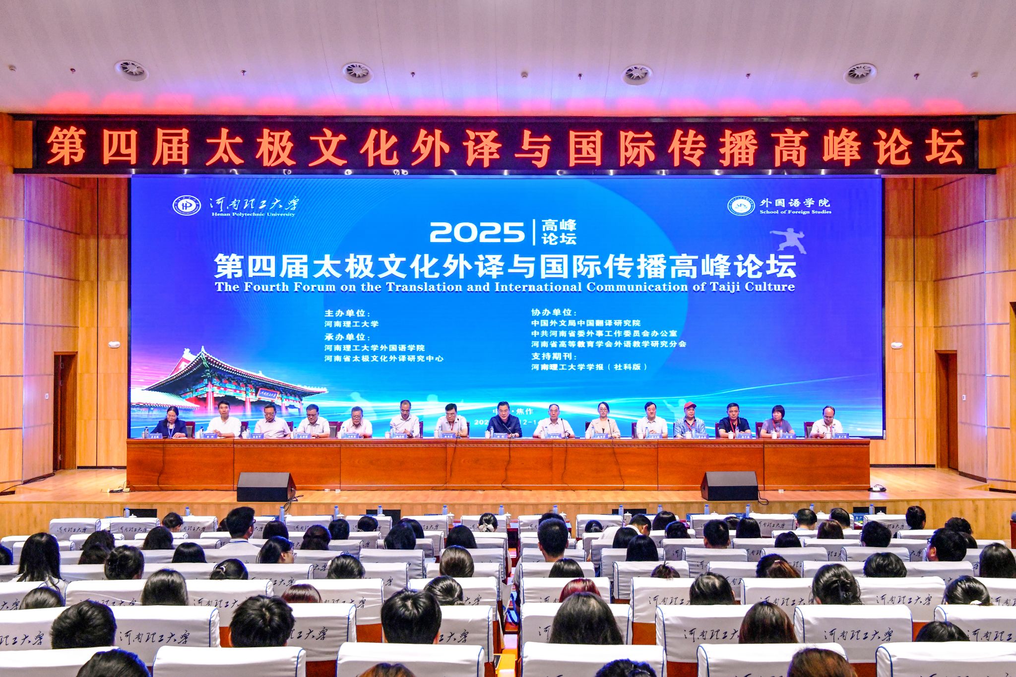 本网讯(通讯员 孙丽娟)9月13日至14日,第四届“太极文化外译与国际传播高峰论坛”在我校南校区图书馆学术报告厅举办。本次会议由中国外文局中国翻译研究院、中共河南省委外事工作委员会办公室、河南省高等教育学会外语教学研究分会指导,河南理工大学主办,河南理工大学外国语学院、河南省太极文化外译研究中心承办。河南省高等教育学会外语教学研究分会会长张加民、河南省委外事工作委员会办公室陈国良、中国外文局中国翻译研究院译审赵丽莎、河南理工大学副校长程伟等出席开幕式并致辞。外国语学院院长李惠敏主持开幕式。来自省内外30余所高校的专家、学者以及6家企事业单位代表和外国语学院300余名师生参加了本次论坛。