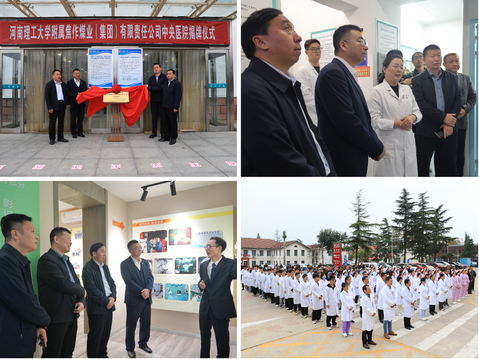 校长赵同谦等为“河南理工大学附属焦作煤业(集团)有限责任公司中央医院”揭牌