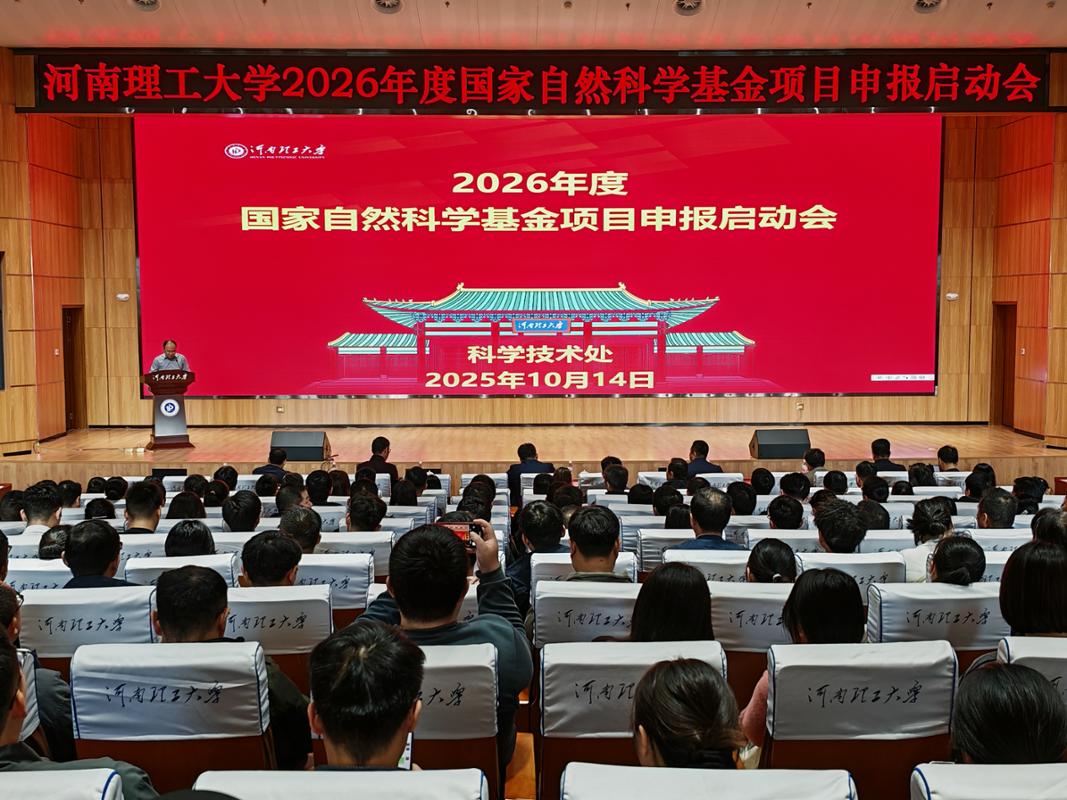 本网讯(通讯员 张聪)近日,学校在第二图书馆报告厅组织召开2026年度国家自然科学基金项目申报启动会,副校长李振华出席会议。南开大学刘哲理教授,华中科技大学孙燕华教授,科技处相关领导,各理工科学院院长、科研副院长、科研秘书以及青年教师代表参加会议,会议由科技处副处长张宝庆主持。