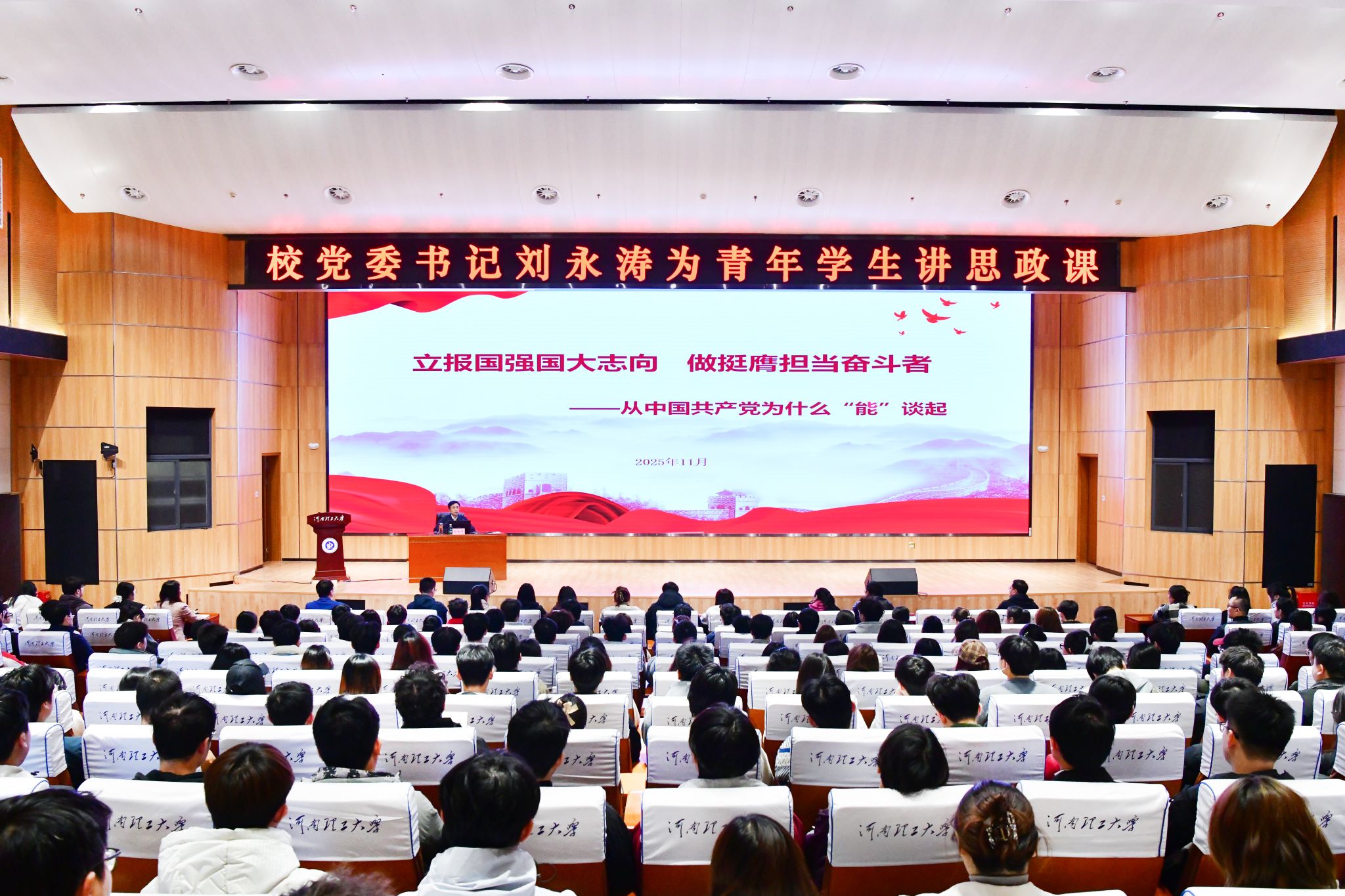 本网讯(记者 李童铃/文 李为群/图)11月9日上午,校党委书记刘永涛在南校区第二图书馆A厅为青年学生讲授思政课。校院两级学生骨干300余人参加学习。