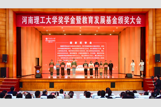 大会介绍了学校奖学金、教育发展基金的设置、构成和资助等情况,对获得“国家奖学金”“国家励志奖学金”“孙越崎奖学金”“朱训教育奖励基金”“傅恒志院士基金”“姚晓峰、余丽奖学金”“九鼎科技奖学金”“柳雪春助学金”“孙成奖学金”“美好前程助学金”“腾飞建工奖助学金”“本勤·助力助学金”“才子基金奖学金”“脉库科技助学金”“王威阅读之星奖学金”等15项奖励的师生进行了表彰。