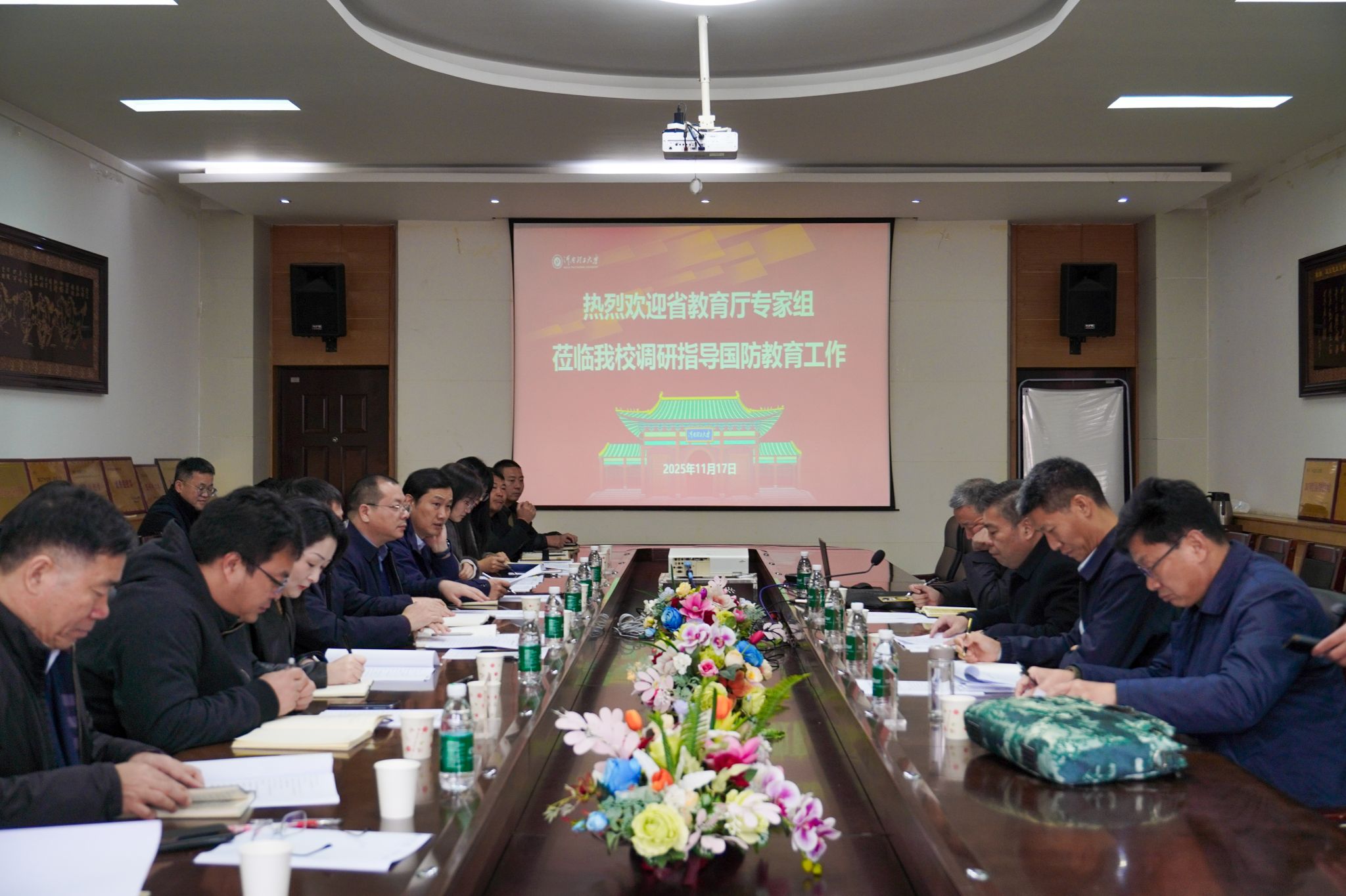 本网讯(通讯员 孔祥增)11月17日上午,河南省教育厅专家组莅校调研国防教育工作。专家组组长、河南中医药大学党委副书记朱建光,专家组副组长、郑州航空工业管理学院武装部部长王洪梁,专家组成员、郑州大学武装部副部长王军,专家组成员、郑州航空工业管理学院武装部副部长邢金善对我校国防教育工作开展情况进行现场调研和指导。学校副校长边亚东出席会议并致辞,人事处、教务处、社科处、武装部、马克思主义学院、应急管理学院等单位负责人,军事课教师代表和学生代表参加会议。