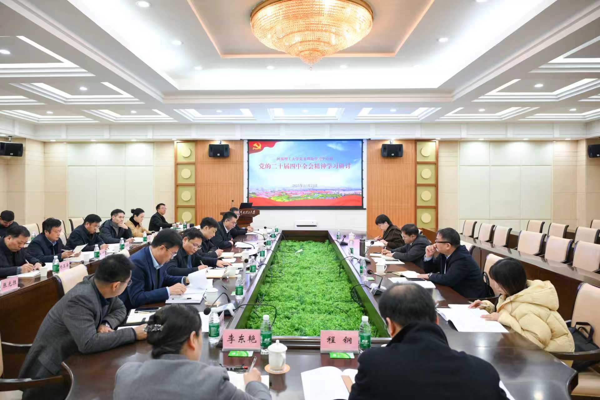 聚焦学习贯彻党的二十届四中全会精神,科学谋划学校“十五五”事业高质量发展,扎实推进“双一流”创建这一主题,校领导赵同谦、李振华、边亚东、魏建平作重点发言。教务处处长程钢、发规处处长李东艳进行汇报交流。河南省青年理论宣讲专家、马克思主义学院副教授申海涛作辅导解读。