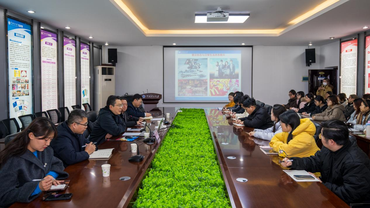 本网讯 (通讯员 盛兰庭)12月17日上午,校党委副书记程伟在北校区问贤楼121会议室为文法学院学生讲授思政课。法学2403班和研究生党支部40余名学生聆听授课。