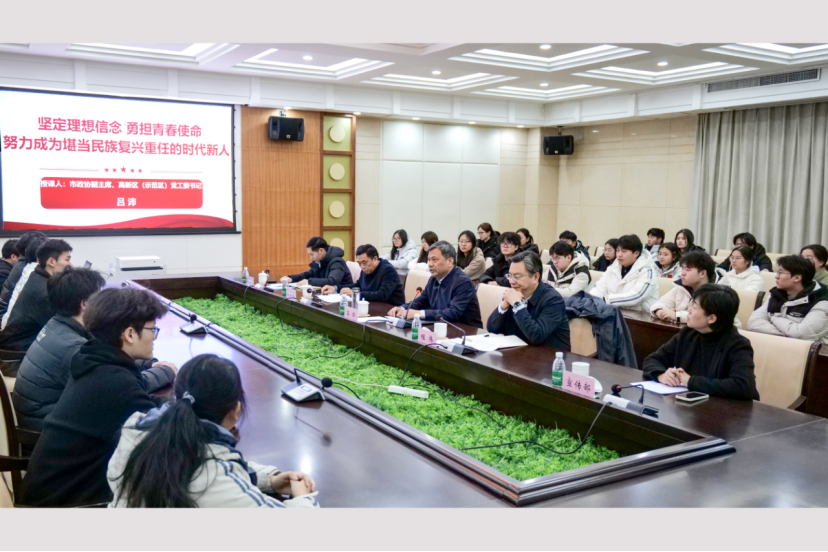 本网讯(记者 段志强/文 李英健/图)12月31日,焦作市政协副主席、高新区(示范区)党工委书记吕沛为学生讲授《坚定理想信念 勇担青春使命 努力成为堪当民族复兴重任的时代新人》主题思政课。校党委副书记程伟主持,学校相关职能部门负责同志和40余名学生代表参加学习。