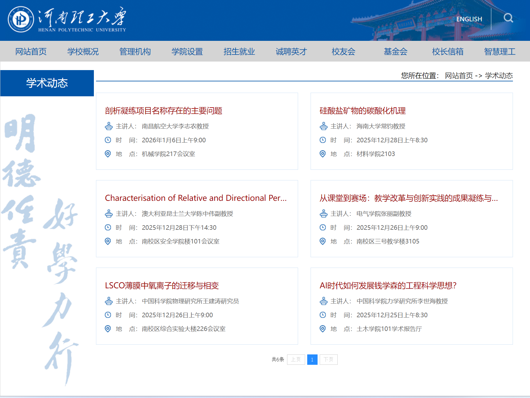 本网讯(记者 苏丽敏)经前期调研、开发和测试,1月13日,学校新闻网“学术动态”专栏正式上线。该栏目旨在传递学术声音、拓宽交流平台,营造浓厚学术氛围。