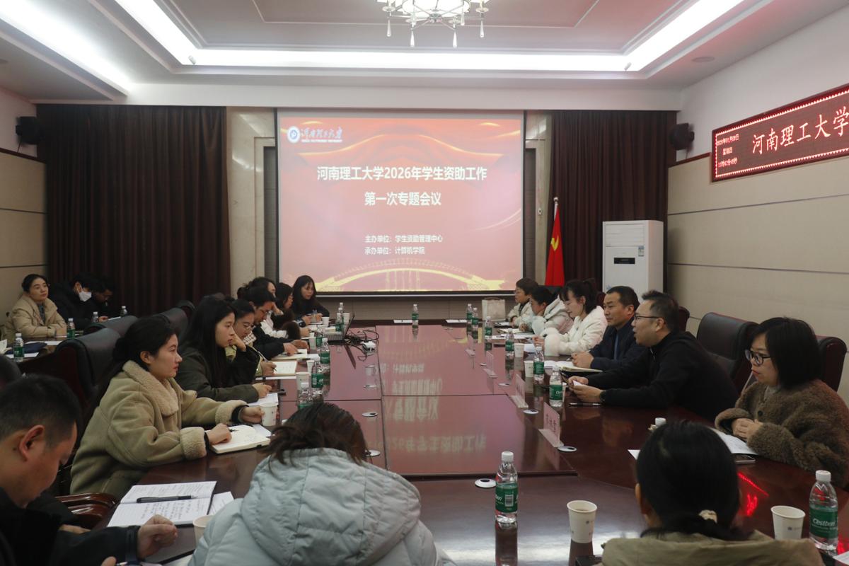 本网讯(通讯员 苏林雪 冯荣荣 武豪杰)为扎实推进学生资助工作,全面落实国家资助政策,提升资助育人实效,1月8日下午,学生资助管理中心在计算机学院217会议室组织召开2026年学生资助工作第一次专题会议。学生资助管理中心全体老师、各学院资助专员参会,会议由学生资助管理中心副主任肖庆伦主持。