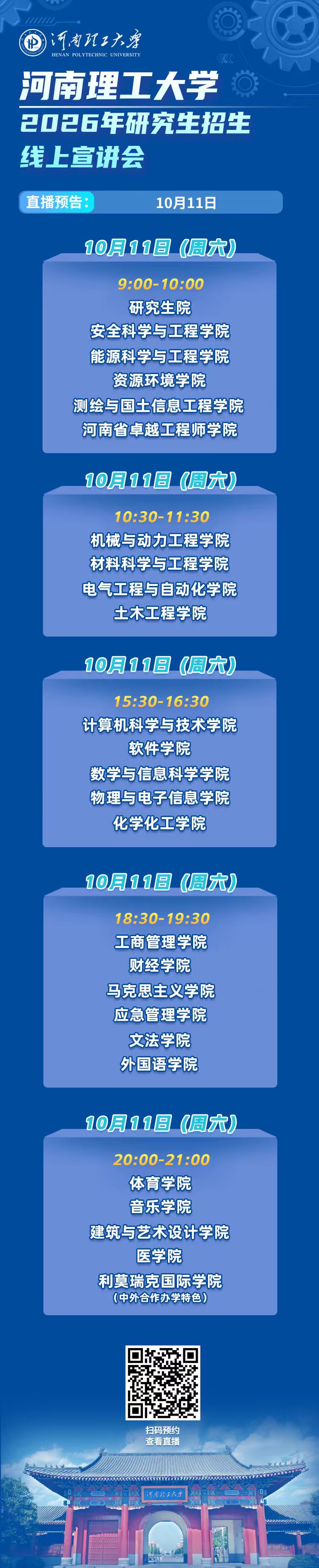 10月11日,河南理工大学研究生院携手各大招生院系齐聚云端、围坐圆桌,共话研途未来,针对“招生培养政策、专业学科魅力、学院育人优势、未来职业蓝图……”为考生全方位解答各类疑问!
