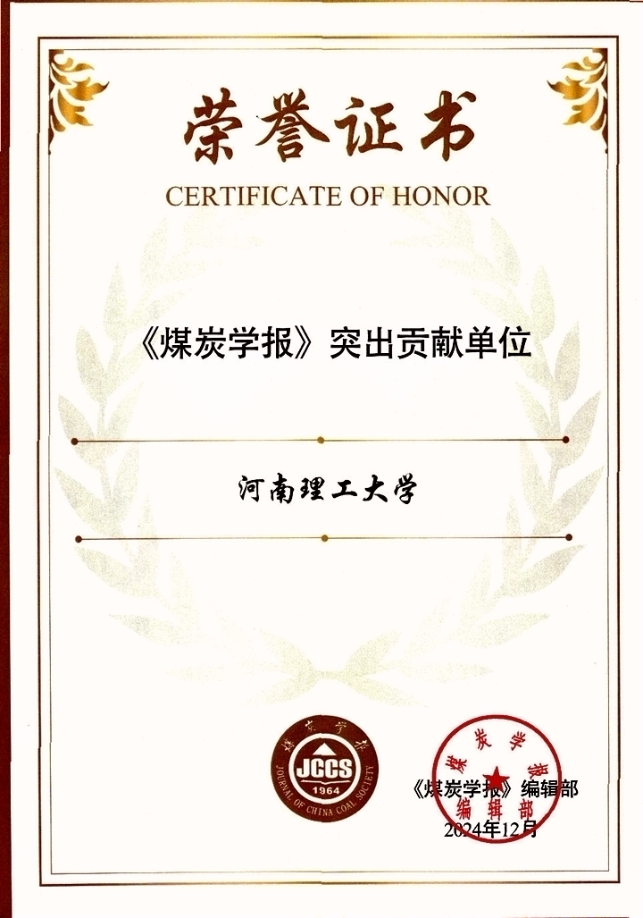 在《煤炭学报》创刊60周年之际,学报为感谢审稿专家作出的贡献,综合考虑近5年审稿质量、审稿速度、审稿数量等多项指标,授予93位审稿专家“《煤炭学报》杰出贡献审稿专家”称号。我校7位教授入选,分别是:王登科、勾攀峰、刘勇、苏现波、倪小明、郭文兵、魏建平。《煤炭学报》为表彰对报刊发展做出突出贡献的团队,根据团队发文量、学术影响力等相关指标,评选出45个“突出贡献团队”。我校2支团队入选,分别是苏现波教授负责的“煤层气生物工程团队”(成员包括:郭红玉,夏大平,赵伟仲,王乾,刘建民),魏建平教授负责的“射流技术灾害防控团队”(成员包括:刘勇,张宏图,徐向宇,陈长江,张慧栋)。会上,中国煤炭学会公布“科学传播专家团队(2024-2026年) 认定名单”,共认定22支团队,我校2支团队入选,分别是李振华教授、郭文兵教授作为首席专家领衔的“中国煤炭学会矿产资源绿色高效开采与灾害防控科学传播专家团队”,郑德顺教授、孙凤余副教授领衔的“中国煤炭学会地学探秘科学传播专家团队”。