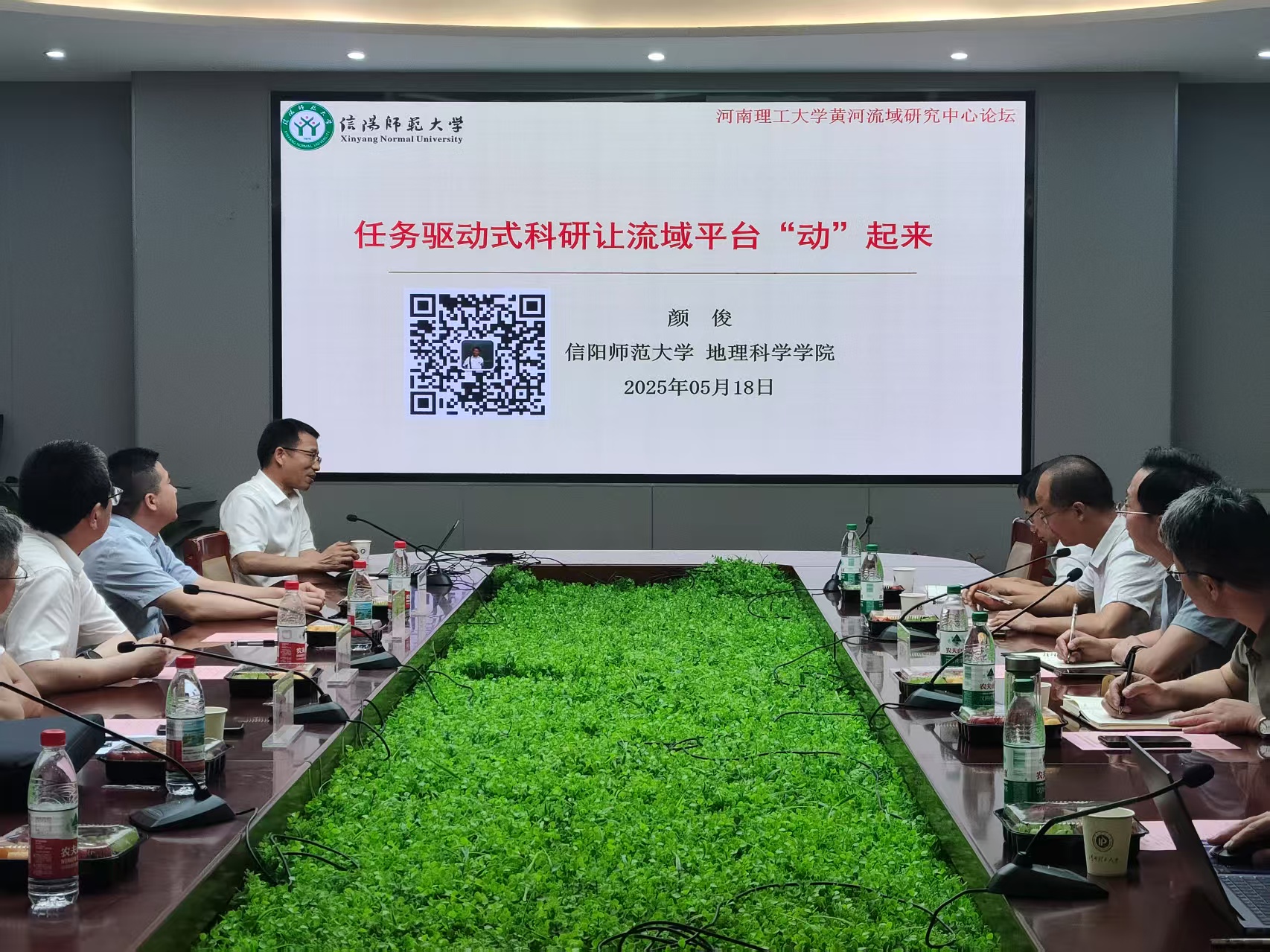 研讨会上,测绘学院副院长柴华彬致辞并介绍了学院整体情况。黄河流域研究中心主任乔旭宁详细介绍了中心在流域资源保护与城乡高质量发展领域的研究成果及未来规划。学术交流过程中,河南省科学院地理研究所所长鲁鹏做了题目为“环境考古中的古代人地观”的学术报告,从历史视角解析了黄淮流域人地关系的演变,强调环境考古对现代自然资源管理的启示;信阳师范大学地理科学学院副院长颜俊围绕“任务驱动式科研让流域平台‘动’起来”进行交流,提出通过任务导向的科研模式激发流域监测平台的协同创新活力,强调了流域的重要性、待研性和话语权;许昌学院地理与空间信息学院院长闫慧的报告“淮河流域地表水硼污染及源解析”,结合实地数据揭示淮河流域地表水硼污染成因,为流域水环境治理提供了科学依据;洛阳师范学院地理与旅游学院副院长张小虎聚焦“地理空间视角下河南省非物质文化遗产传承保护研究”主题,探讨了地理信息技术在文化遗产保护中的应用潜力。最后,与会专家围绕科研协同平台建设、跨学科合作机制与数据共享平台搭建及人才培养等内容进行了深入研讨。
